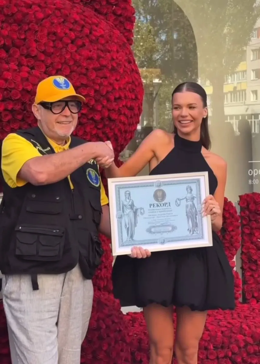 Анастасія Скальницька встановила національний рекорд України, створивши композицію з рекордної кількості троянд – 10 190. Флористка показала величезного ведмедика з квітів.