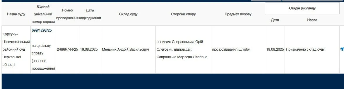 Юрій Савранський подав заяву на розлучення. Фото: court.gov.ua