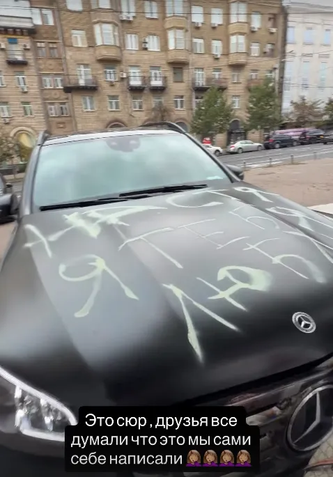 Блогерка Стася Макєєва повідомила, що її автомобіль став мішенню невідомого хулігана. Увечері до її будинку під’їхала машина, чоловік розмалював авто фарбою і швидко поїхав. Тепер блогерка шукає винного та зізнається, що фарба не змивається.