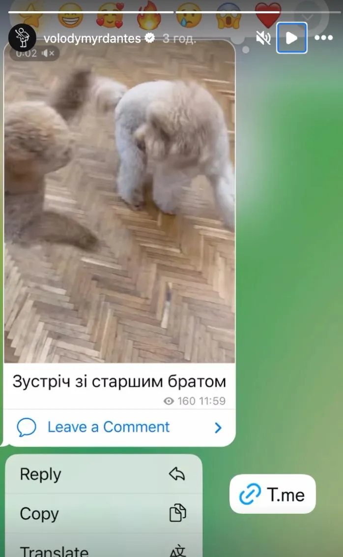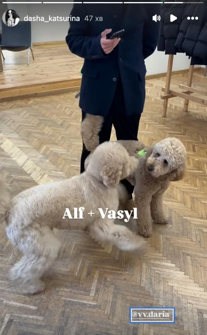 Даша опублікувала «сторіз» із улюбленим песиком Василем – тим самим, якого вони з Володимиром завели ще під час стосунків. Тварина гралася з іншим собакою.