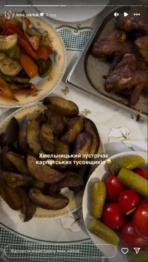 Леся Нікітюк, яка давно стала однією з найвпізнаваніших телеведучих країни, не приховує своєї любові до рідного Хмельницького. Цього разу зірка поділилася у соцмережах фото з домашнього столу, де головними стравами стали запечені крильця, овочі-гриль та картопля по-домашньому.
