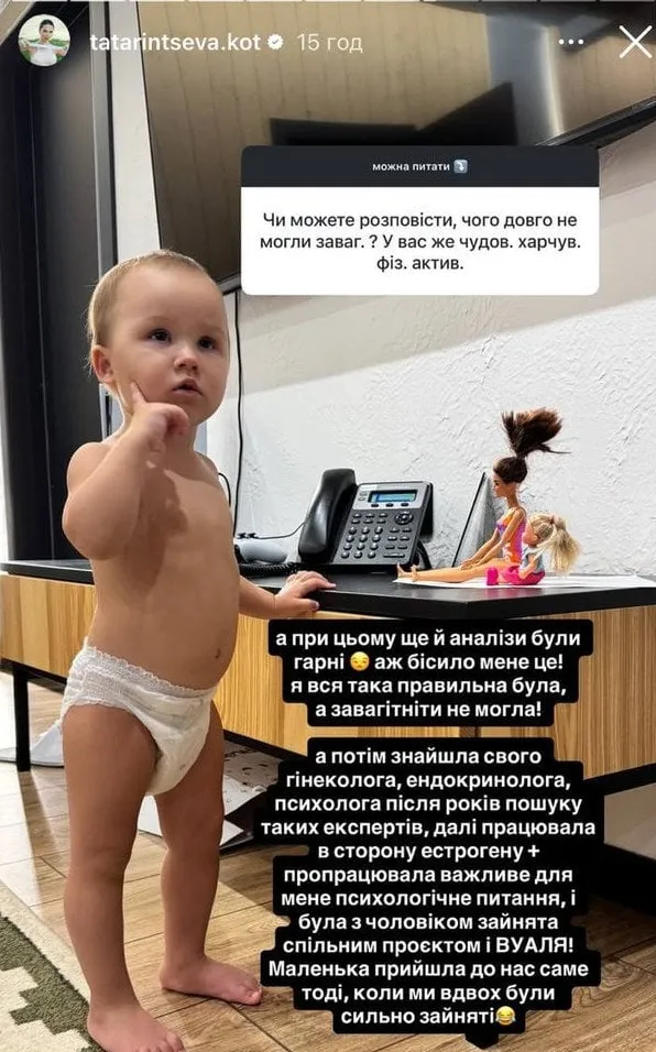 «Знайшла свого гінеколога, ендокринолога, психолога після років пошуку таких експертів, далі працювала в сторону естрогену, пропрацювала важливе для мене психологічне питання і була з чоловіком зайнята спільним проєктом! Маленька прийшла до нас саме тоді, коли ми вдвох були сильно зайняті», – поділилася вона в Instagram.