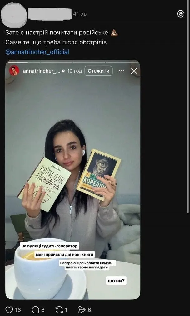 Анна Трінчер потрапила у скандал через любов до читання: співачка встигла все пояснити