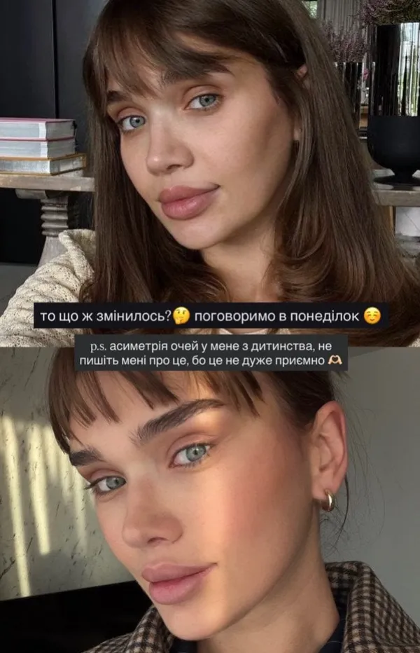 «Всі, хто так голосно обговорює мою зовнішність, конкретно дали в штангу і не туди дивилися. Я отримала багато запитань навіть від тих підписниць, аватарки яких знаю роками. Тому я все ж розповім, хоча планувала зробити це за кілька місяців – коли буде фінальний результат. Бо зараз я досі в набряках і важко говорити об’єктивно. З очима та бровами я не робила нічого».