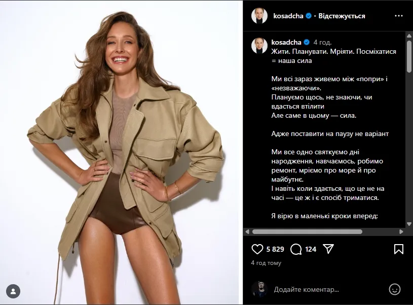 «Жити. Планувати. Мріяти. Посміхатися = наша сила», — написала Осадча.