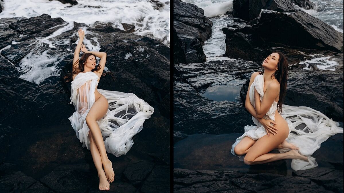 Сексуальна і вразлива: Наталка Денисенко продемонструвала свою фігуру у прозорій тканині на скелях