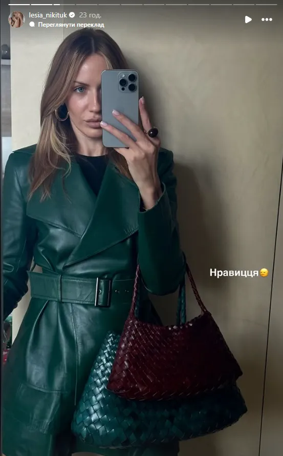 Українська иелеведуча Леся Нікітюк поділилася з шанувальниками своїм новим осіннім образом, доповнивши його стильним аксесуаром. Зірка обрала сумку бренду Dragon Diffusion, яка відразу привернула увагу підписників.