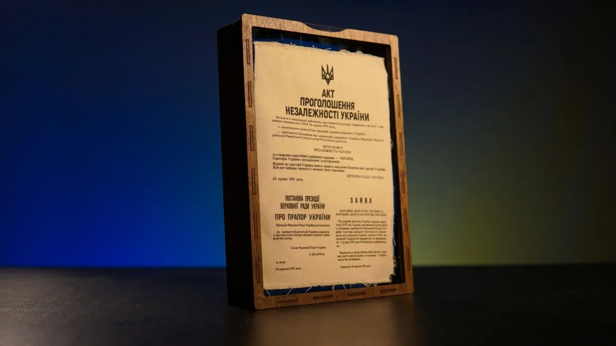 До комплекту також входять державний прапор та копія Акта про проголошення України незалежною державою.