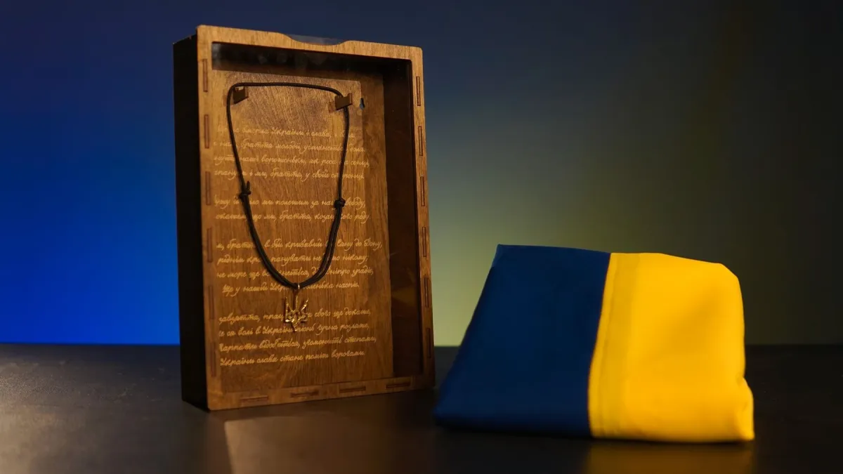 За інформацією, ДПСУ Джолі презентували у подарунок «Ексклюзивний набір Державності», який складається з підвіски у вигляді державного герба України – тризубця.