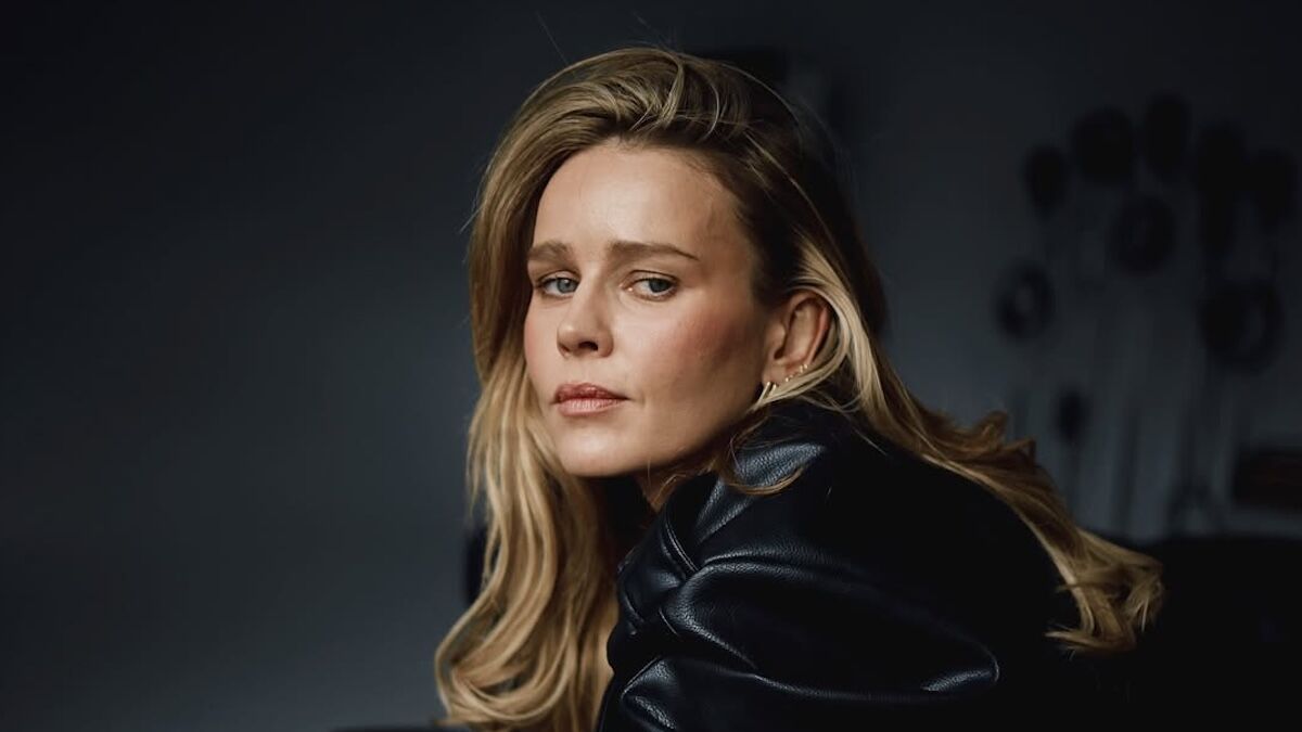 На світлинах акторка позує у чорному боді та шкіряній куртці.