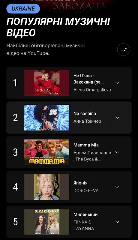 YouTube-тренди в Україні очолила несподівана пісня: трек обійшов хіти Дорофєєвої, Пивоварова і Трінчер