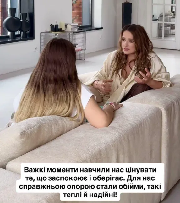 «Моя старша донька пройшла через війну, самотність, притулок і, звісно, що їй потрібна була підтримка і допомога - і я просто брала її на руки і качала її, ніби вона досі маленька. Я бачила, як їй це допомагає - вона плаче, вона розслабляється та ніби повертається в дитинство, до маминих обіймів і це дуже важливо» – розповіла зірка.