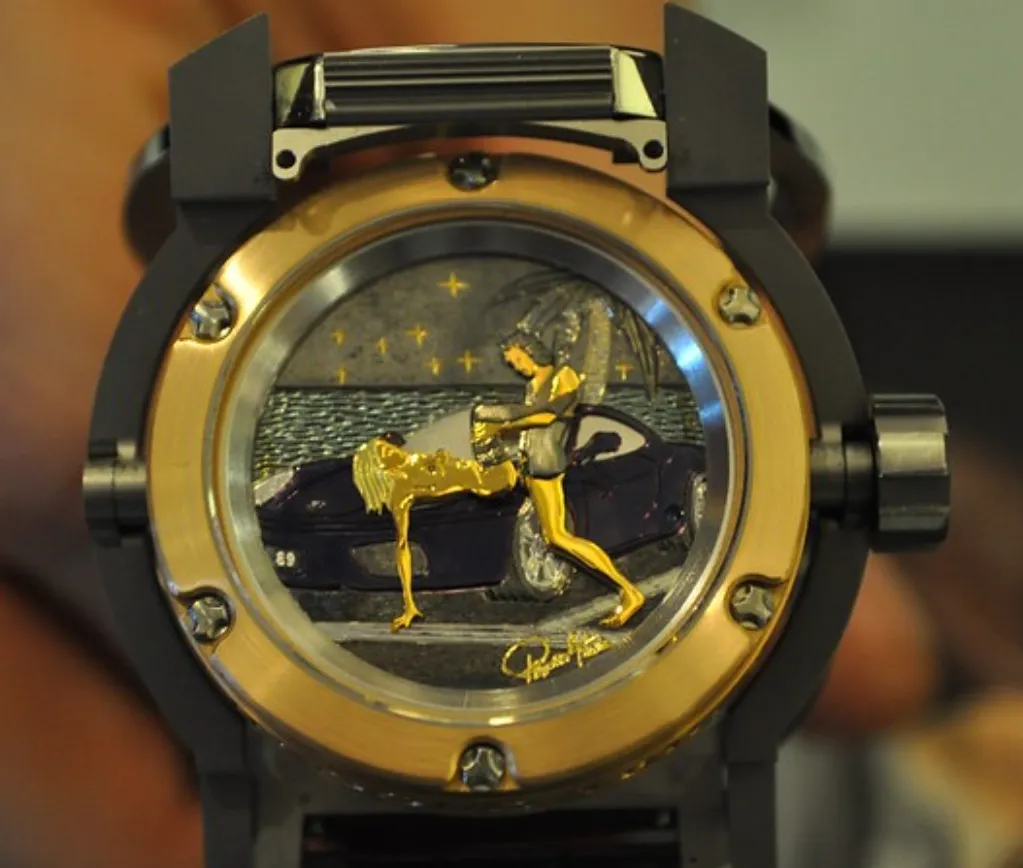 «Незвичайний годинник Гаріка Корогодського, який вас точно здивує. Бізнесмен обрав унікальний годинник від Antoine Preziuso за €50 000. Це творіння незалежного швейцарського годинникаря, який виготовляє всього 60 годинників на рік. З першого погляду модель виглядає стримано, але на звороті зображена пара, яка кохається на капоті Ferrari. А коли покрутити заводну головку, сцена починає рухатися».