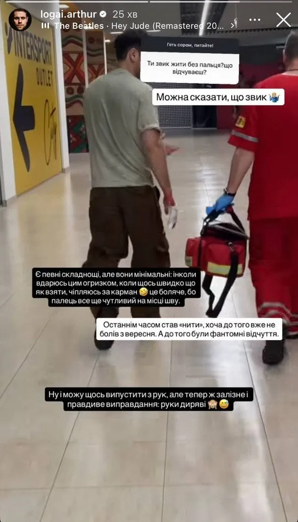«Можна сказати, що звик. Є певні складнощі, але вони мінімальні. Інколи вдаряюсь цим огризком, коли щось швидко хочу взяти, чіпляюсь за карман. Це боляче, бо палець все ще чутливий на місці шву. Останнім часом став «нити», хоча до того вже не болів від вересня», – поділився актор.
