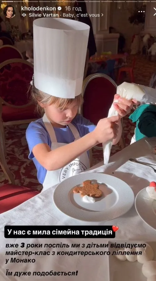 «У нас є мила сімейна традиція. Вже три роки поспіль ми з дітьми відвідуємо майстер-клас із кондитерського ліплення в Монако. Їм дуже подобається!» – ділиться знаменитість.