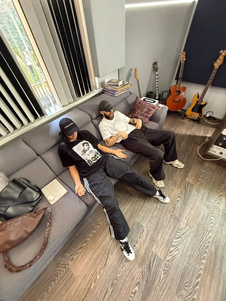 На першому фото Джамала показала, як разом із командою працює над створенням майбутніх хітів. Атмосфера знімку тепла й дружня, відчувається, що робота приносить задоволення.