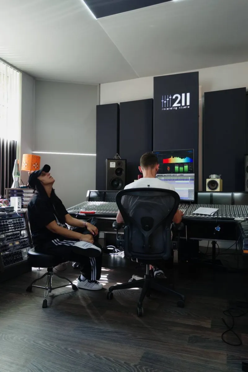 Фінальне фото показує команду в професійній студії звукозапису, де відбувається основна робота над треками.