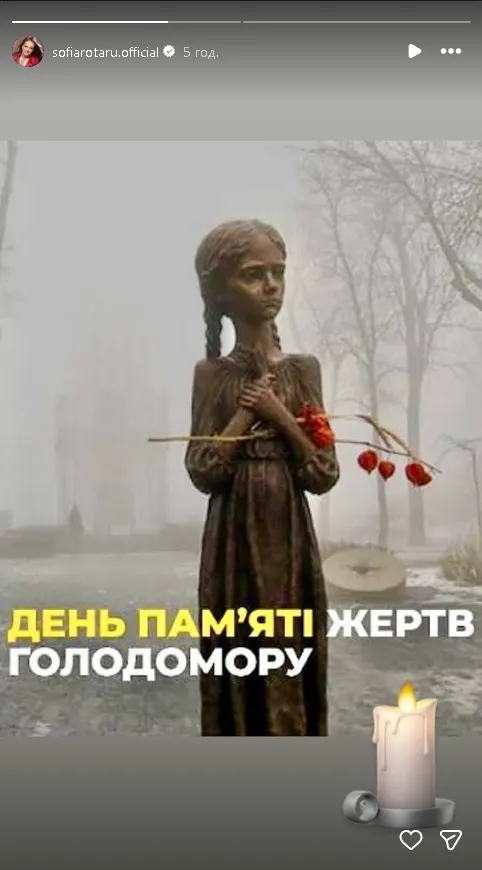 Софія Ротару опублікувала символічне фото: співачка нагадала про День пам'яті жертв Голодомору