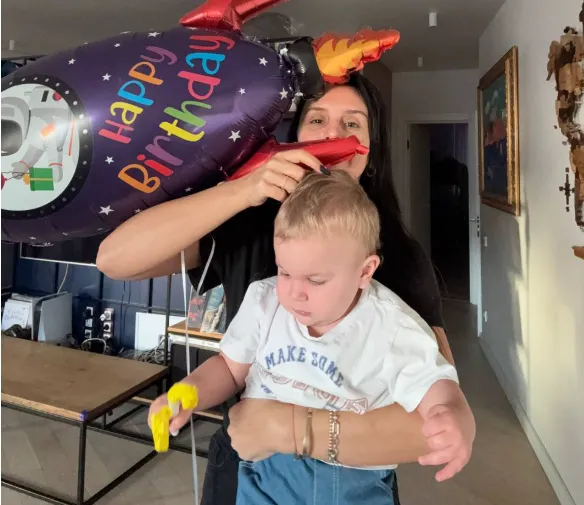 На знімках панує тепла атмосфера, а святковий настрій створює велика повітряна куля у формі ракети з написом Happy Birthday. На фотографіях також присутні старші діти артистки: 7-річний Емір-Рахман та 5-річний Селім-Гірай.