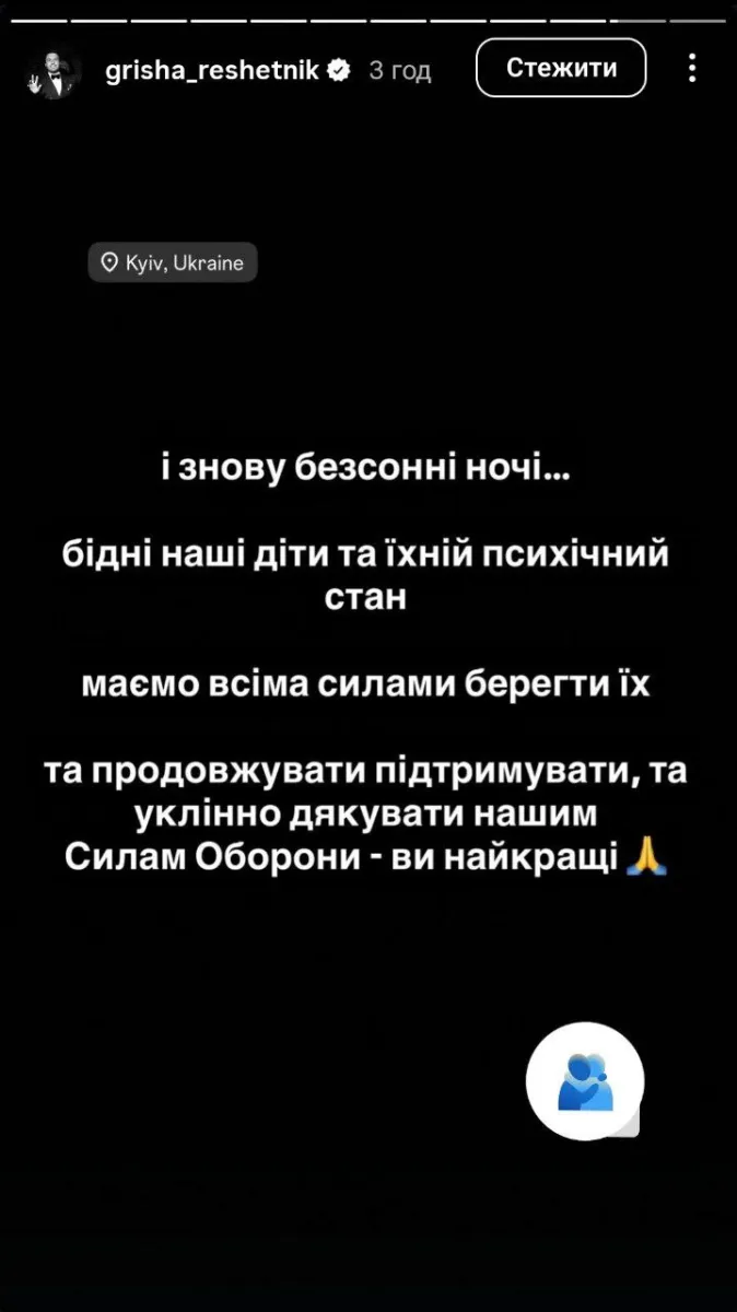 Телеведучий також емоційно зазначив, що такі безсонні ночі стали буденністю для всіх українців, і це сильно впливає на дітей та їхній психічний стан. Ведучий закликав усіма силами підтримувати Сили оборони, адже саме завдяки їм вдалось пережити атаку.