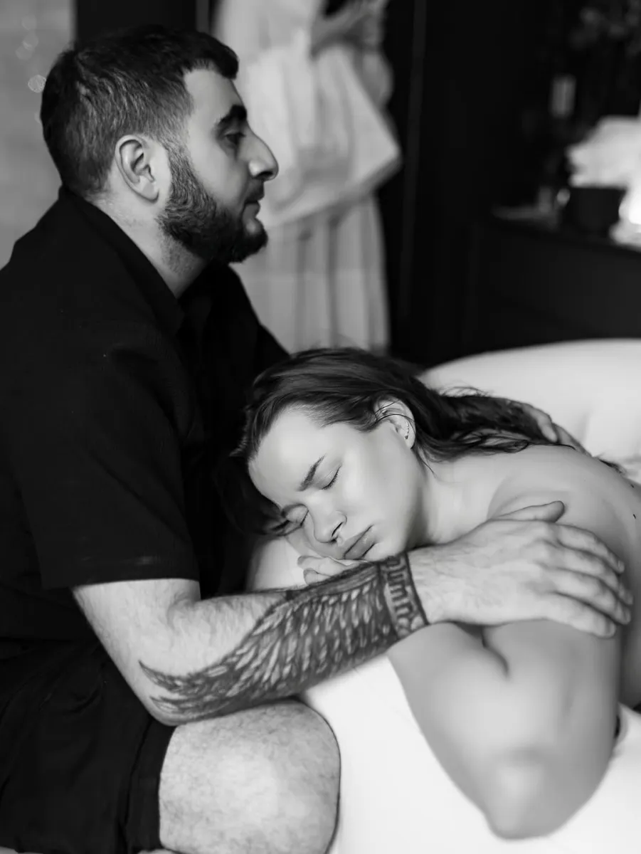 Як відомо, подружжя вирішило народжувати без лікарів – усе відбувалося вдома, просто у ванній. На фото видно, що чоловік був поруч упродовж усього процесу: підтримував Альону під час болю, перейм і кожного етапу пологів.