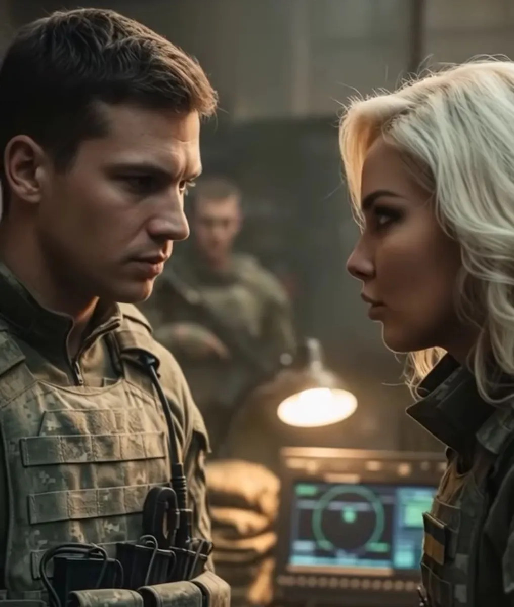 Та попри переживання, чоловік, відчуваючи обов’язок перед країною, вирушає захищати землю. І тоді жінка, не здатна прийняти розлуку, йде за ним – у буквальному й символічному сенсі.