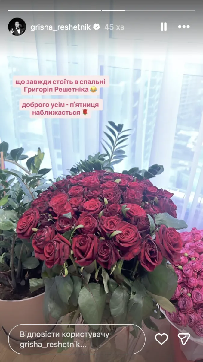 «Що завжди стоїть в спальні Григорія Решетніка 😂… Пʼятниця наближається🌹», – анонсував новий випуск шоу ведучий.