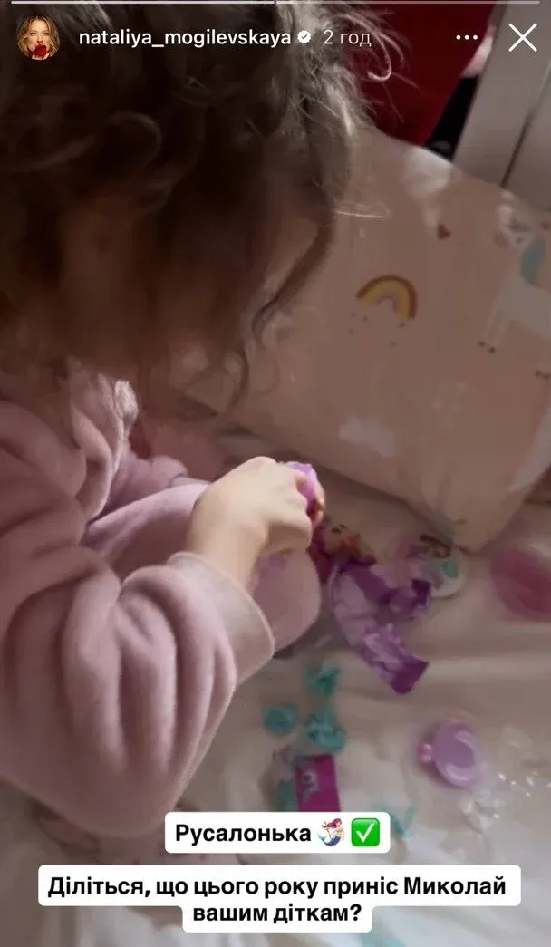 У своєму фотоблогу знаменитість розповіла, що святковий ранок у їхньому домі розпочався дуже рано. Молодша донечка Соня настільки чекала на диво, що, попри вихідний, прокинулася о сьомій ранку. Під подушкою дівчинка знайшла омріяну іграшку – русалоньку, яку одразу почала розпаковувати разом із мамою.