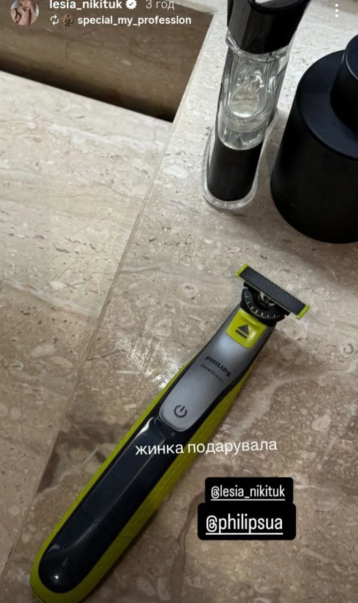 Водночас її чоловік, військовослужбовець Дмитро Бабчук, отримав від Лесі сучасний стайлер Philips OneBlade.