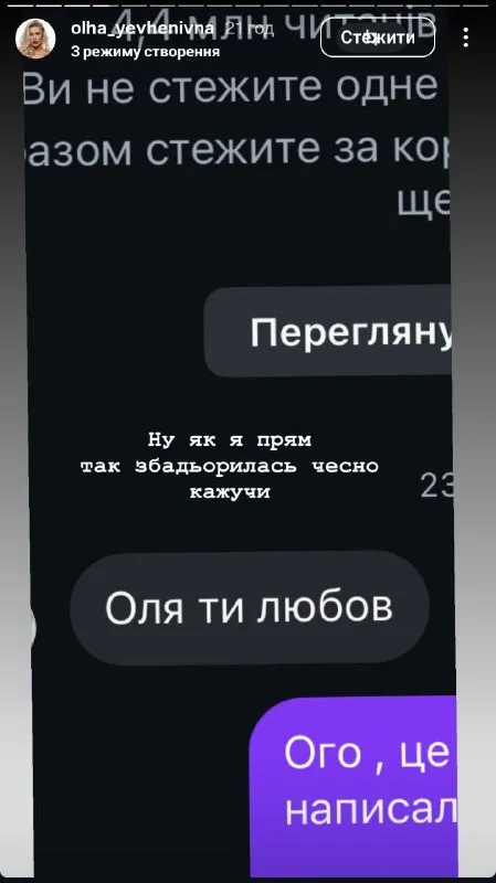 Сторіс Ольги. Скрін