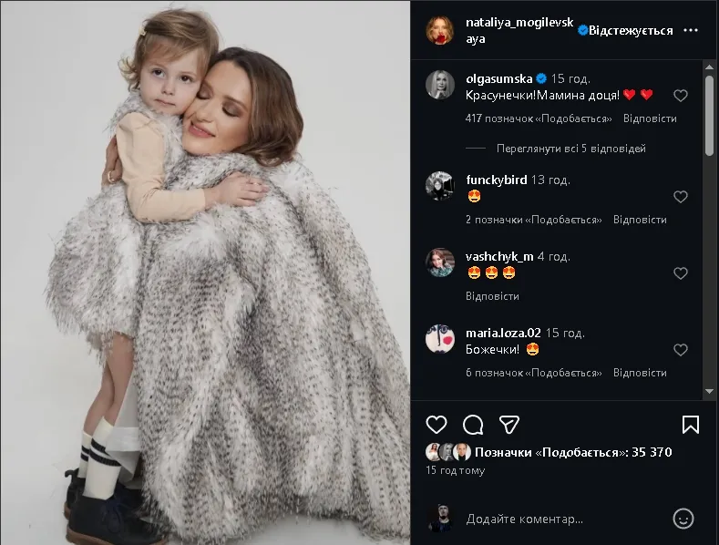Публікація з’явилася в Instagram без підпису. Могилевська залишила промовисту тишу замість коментаря, що виглядало як окремий спосіб підкреслити значення моменту. Дівчинка притискається до мами, а сама мить випромінює затишок, який складно передати словами.