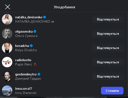 Серед тих, хто поставив вподобайки є й інші відомі постаті українського шоу-бізнесу: Наталка Денисенко, Дмитро Гордон, Катя Осадча та багато інших.