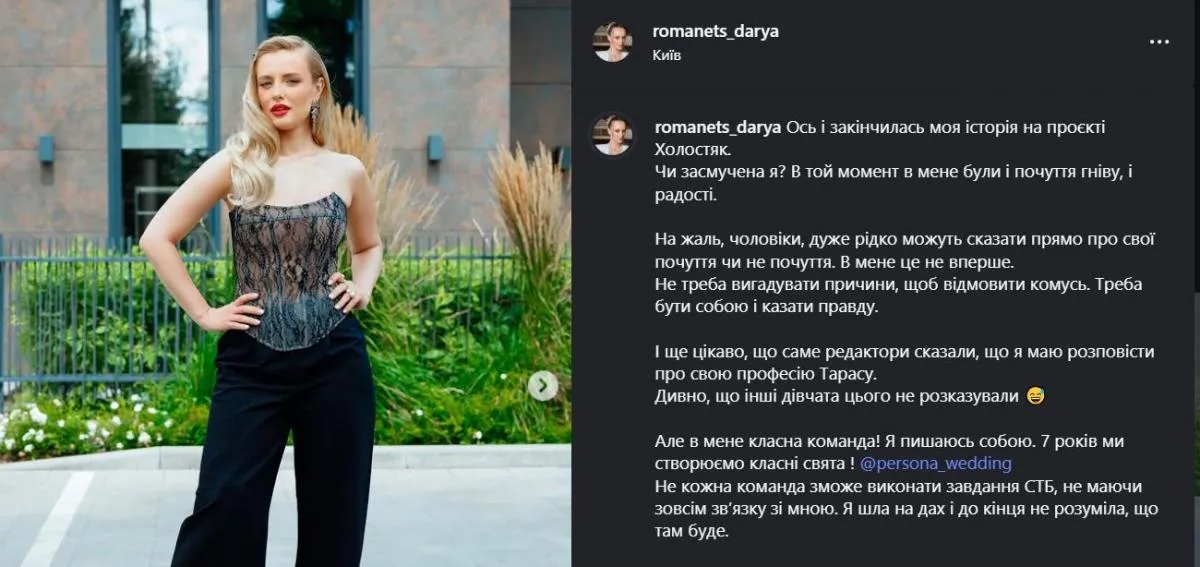 «В мене були почуття гніву і радості»: ексучасниця «Холостяка» Дар’я Романець висловилася про свій виліт з шоу