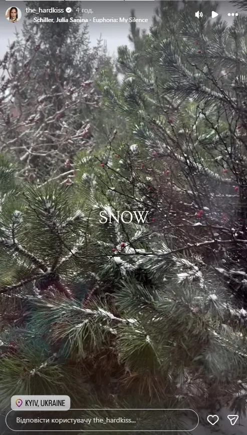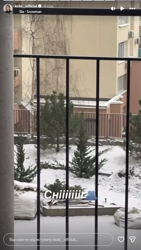 А співачка KOLA виставила "сторіз" із промовистим підписом, розтягнувши слово від задоволення: «Сніііг».