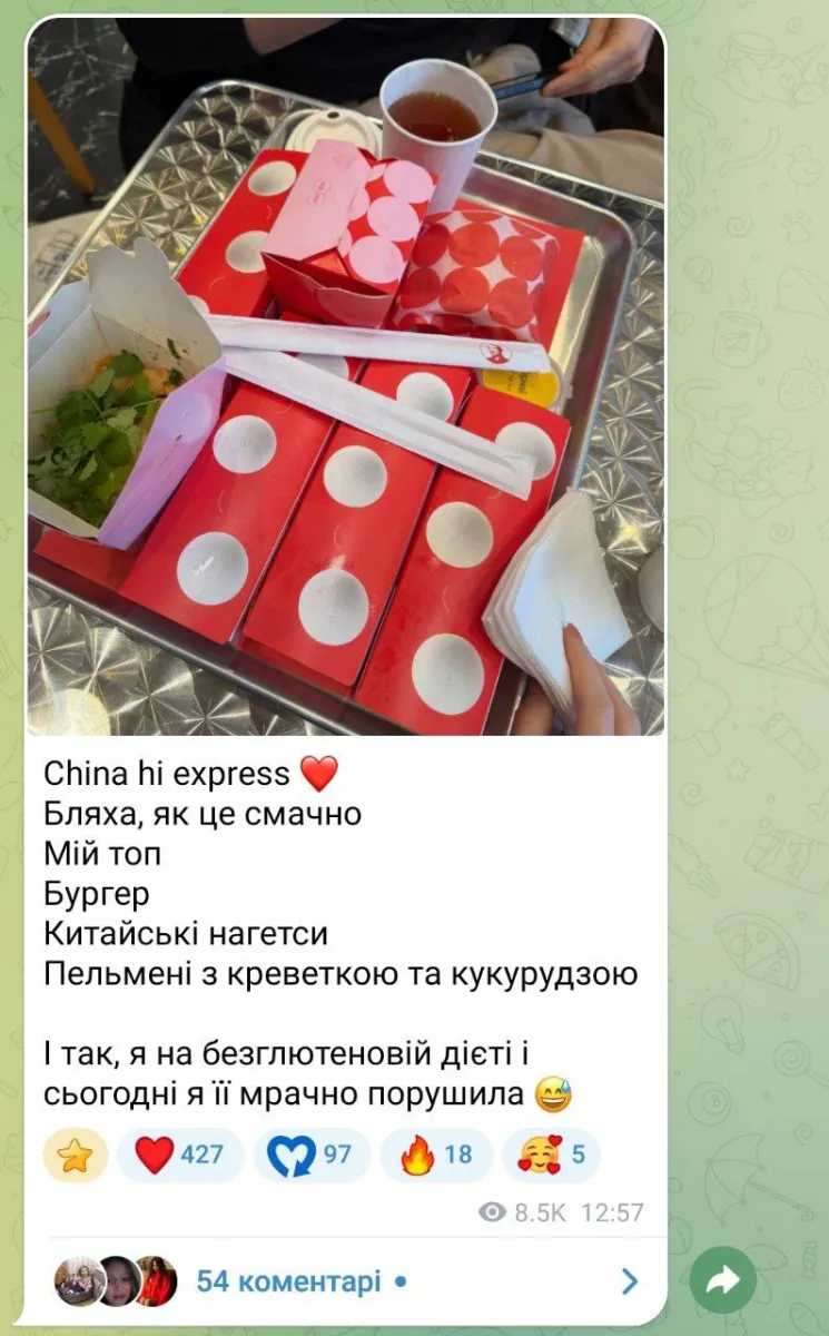 «China hi express ❤️ Бляха, як це смачно», – емоційно зізналася артистка.