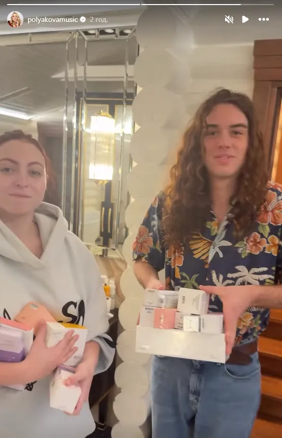 Маша Полякова з чоловіком та подарунками. Фото: Instagram Маші Полякової