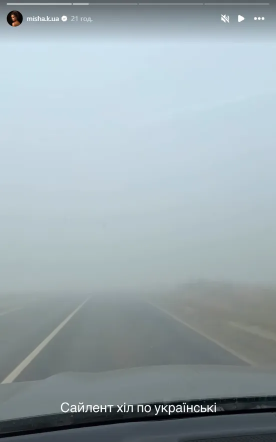 Ксенія Мішина опублікувала у своєму Instagram відео з автомобільної поїздки на гастролі до Рівного. Дорога була майже повністю огорнута густим туманом, що значно ускладнювало видимість.