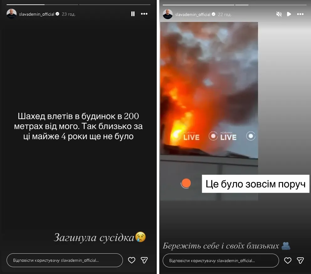 «Шахед влетів в будинок в 200 метрів від мого»: Слава Дьомін розповів про загибель сусідки після обстрілу