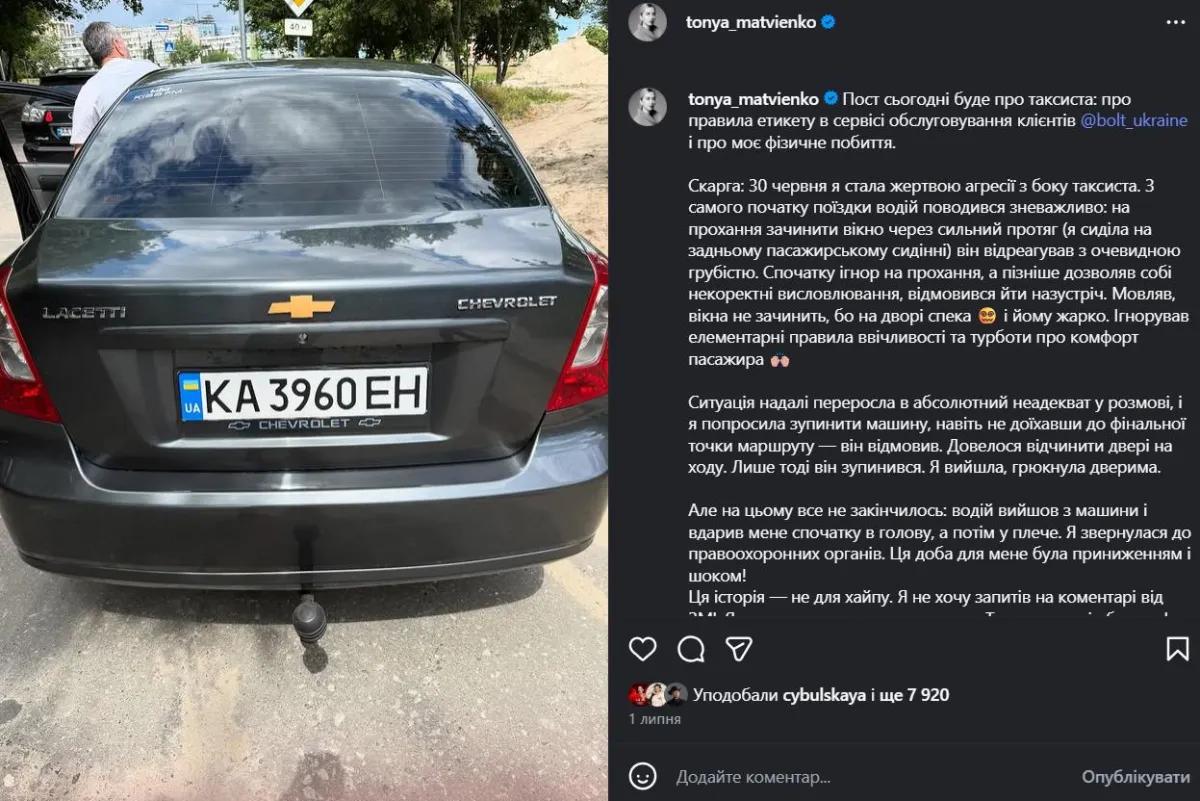 – Мене таксист побив, це мене зламало. Вибило мене з колії, вплинуло навіть на психіку, можна так сказати. Я виснажилась. І все.
