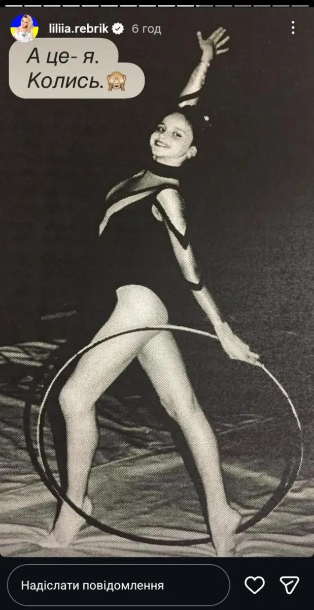 На своїй сторінці в Instagram у сторіс знаменитість опублікувала чорно-біле фото ще з підліткового віку, де її зафіксували під час тренування. На знімку Лілія позує в купальнику з довгими рукавами, а в руці тримає гімнастичний обруч.