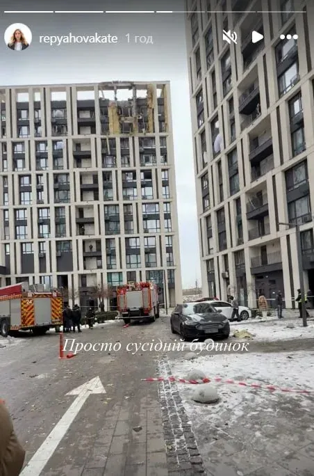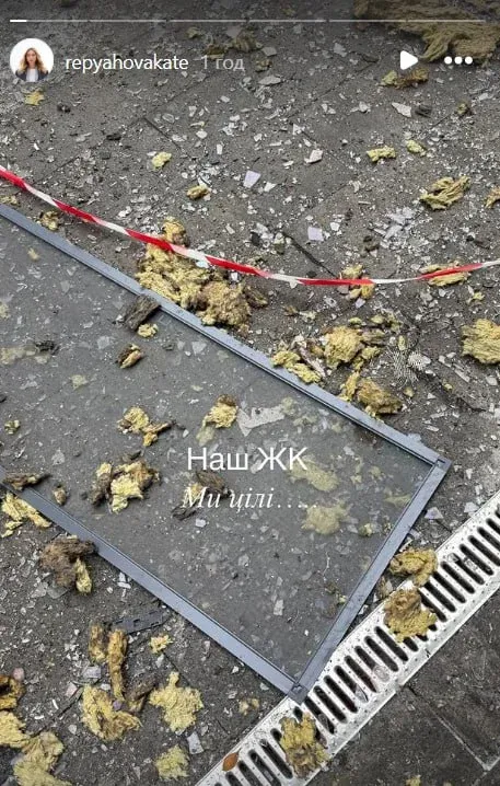 «Наш ЖК. Ми цілі… Я була впевнена, що приліт в наш будинок, тому що неможливо було відкрити двері, якесь сильне повітря було в під'їзді і спрацювала сигналізація», – написала жінка на своїй сторінці в Instagram.
