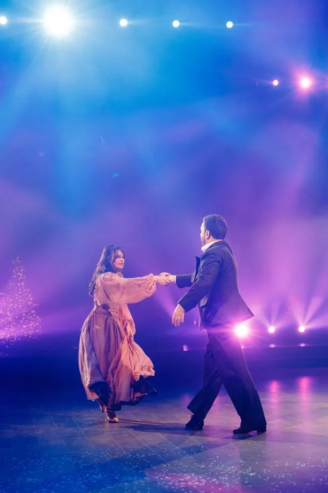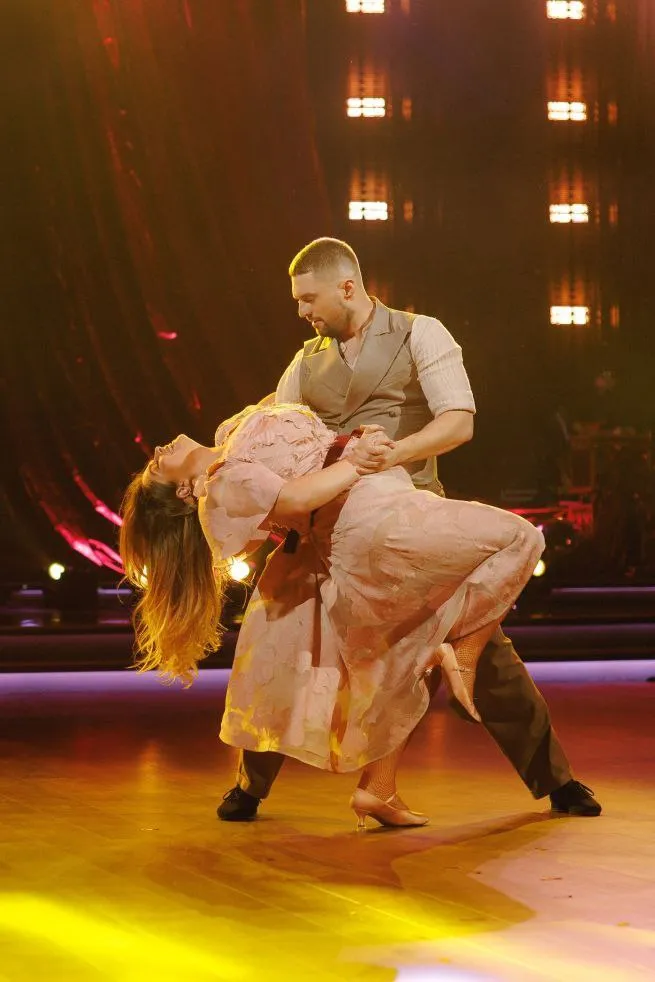 Даша Квіткова та Женя Кот обрали романтичний фокстрот – плавний, елегантний танець із безперервним рухом та гармонією партнерів.