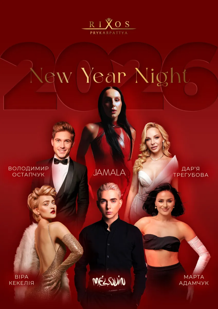 Переможниця Євробачення-2016 Джамала та представник від України на Євробачення-2018 MELOVIN виступатимуть у готелі Rixos Prykarpattya у Трускавці (Львівська область). Компанію їм на сцені складуть Віра Кекелія та Марта Адамчук. Остання, до речі, потрапила до фіналу Нацвідбору на Євробачення-2026, музичною продюсеркою якого є Джамала.