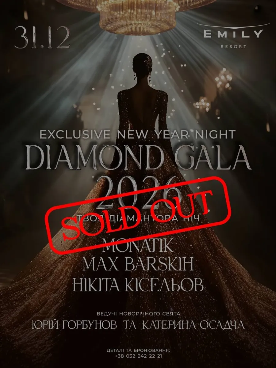 Найпопулярніше зіркове телевізійне подружжя країни, Юрій Горбунов та Катерина Осадча, зустрінуть 2026 рік також у Львівській області. Вони працюватимуть в елітному готельно-розважальному комплексі Emily Resort. Гала-вечірка Diamond Gala Night преміум формату з професійною сценою, світловим і звуковим обладнанням для нічних свят розрахована на приблизно 1500 гостей. На сцені виступатимуть Макс Барських (Max Barskih), Дмитро Монатік (MONATIK) та Нікіта Кісельов.