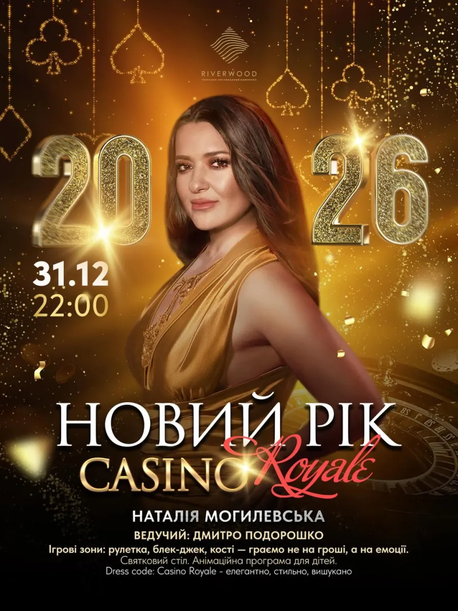 Народна артистка України Наталія Могилевська попрощається з 2025 роком у заміському парку відпочинку Riverwood Relax Park (село Мошни Черкаської області). Це комплекс відпочинку з рестораном, готелем, SPA та басейнами, розташований у мальовничому оточенні соснового лісу з озерами та зонами для прогулянок. В новорічну ніч заклад перетвориться на казино. «Зі столами для гри, картами, кістками, рулеткою та тією самою авантюрною магією, яка робить вечір незабутнім Тут не грають на гроші – тут грають на враження, драйв і настрій, з якого й народжується свято», – йдеться в описі анонсу новорічної вечірки.