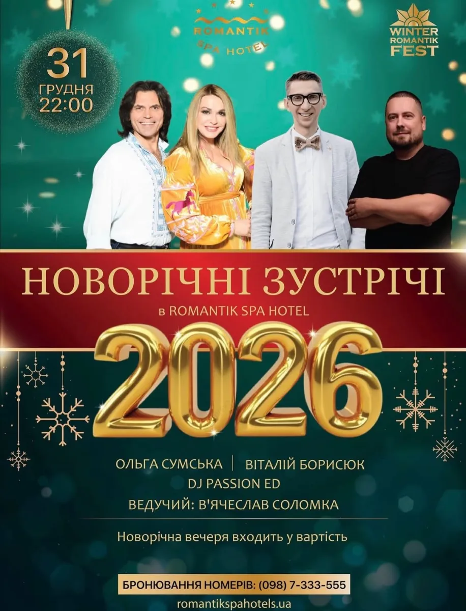 «Новорічні зустрічі 2026» – це святкова ніч, яка поєднує живий виступ зіркових артистів, шоу-програму, танці, банкет і атмосферу зимової казки серед гір, створюючи повноцінну програму для гостей готелю та відвідувачів. Ведучим заявлений телеведучий телеканалу «Київ» В'ячеслав Соломка. Новорічні пакети включають проживання, банкет і програму. Орієнтовні ціни на 31 грудня в пікові дати стартують від 8 000 грн за добу.