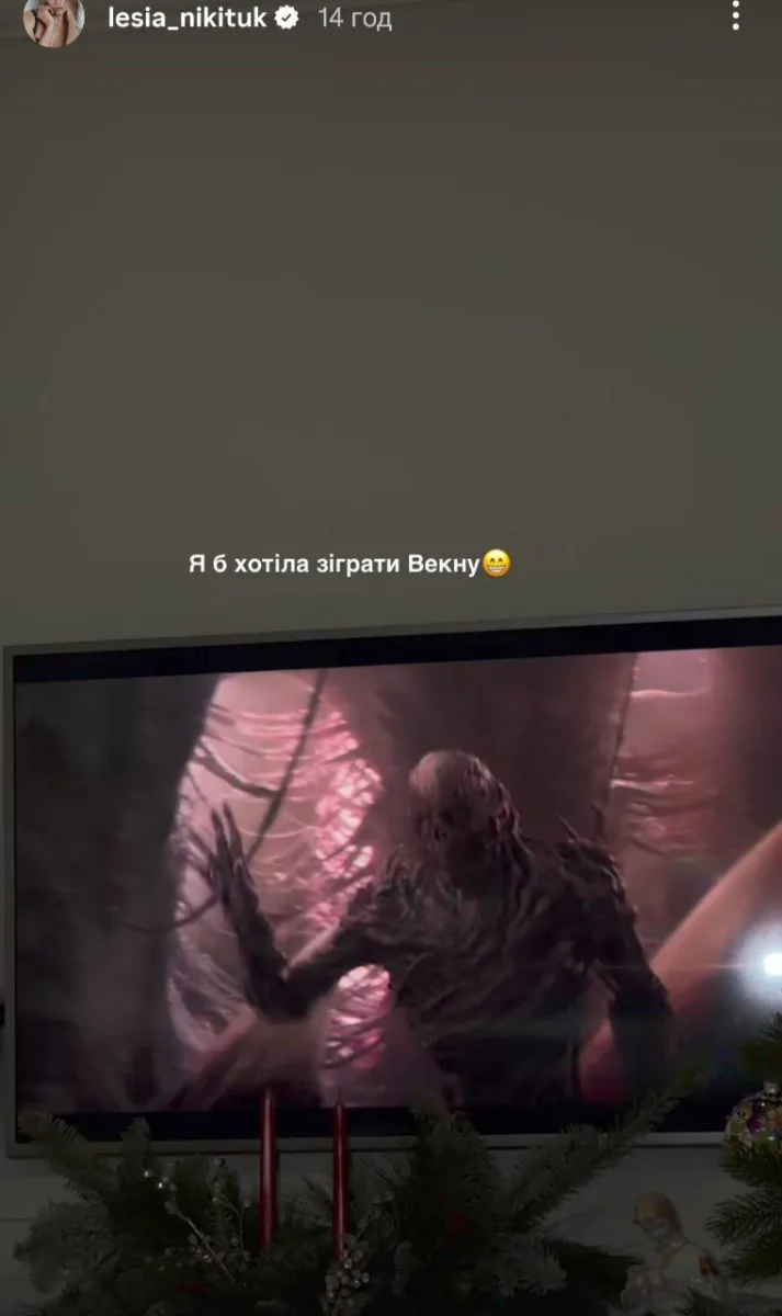 Леся Нікітюк опублікувала в Instagram відео з моменту перегляду фінальної восьмої серії п’ятого сезону серіалу «Дивні дива», який виходив на Netflix у кілька етапів наприкінці 2025 і на початку 2026 року. Про це стало відомо з її сторінки у соцмережі, а також з інформації платформи Netflix.