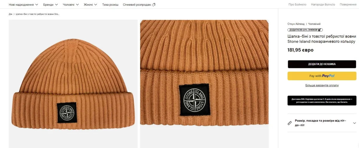 Шапка така, як у Олексанра Усика. Скріншот: boinclo.co.uk