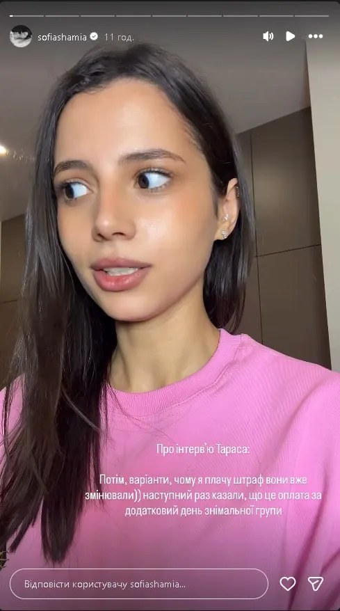 Софія наголосила, що стала єдиною учасницею за всі сезони, яка заплатила штраф. І не за конкретний сезон, а загалом — $5000 за те, що не сказала «бувай» Тарасу.