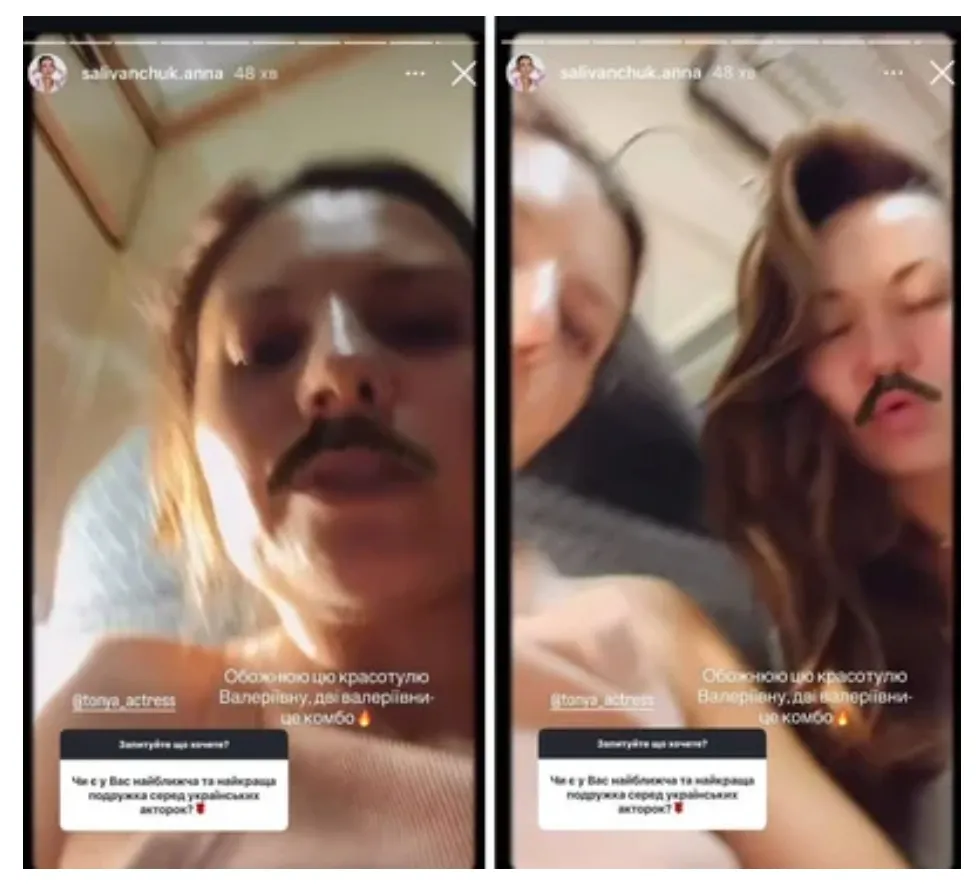 Важливо! Дружба акторок будується на щирості та гуморі. Саліванчук ніжно називає колегу «красотулею Валеріївною» і зазначає, що дві Валеріївни – це справжнє комбо. Сама Хижняк підтвердила ці теплі стосунки, репостнувши відео до себе.
